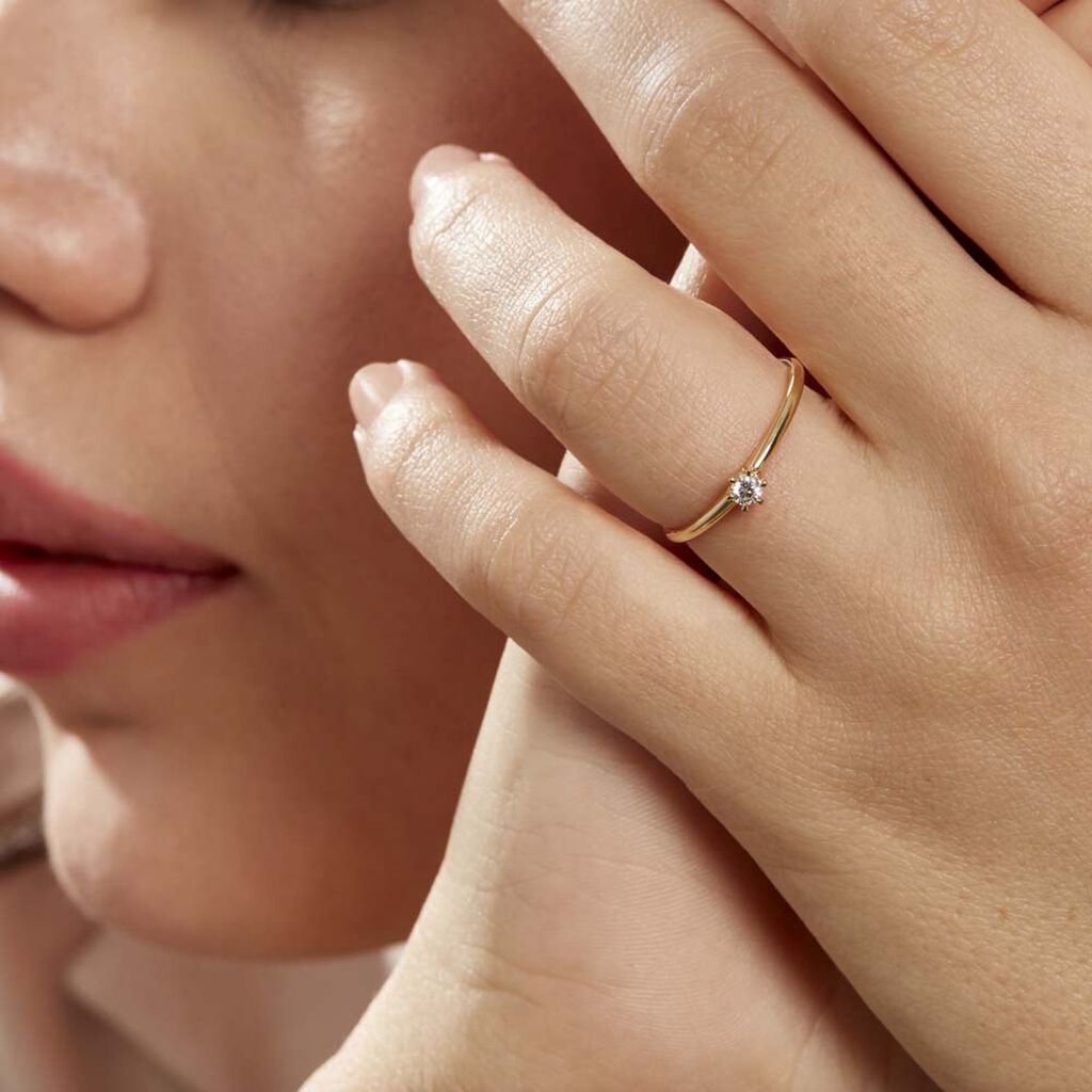 Solitaire Or Jaune 750/1000 Diamant 0.10ct Serti 6 Griffes