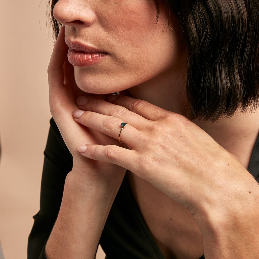Placez votre bague sur l’écran et faites défiler les tailles jusqu’à atteindre les bords intérieurs de votre bague.