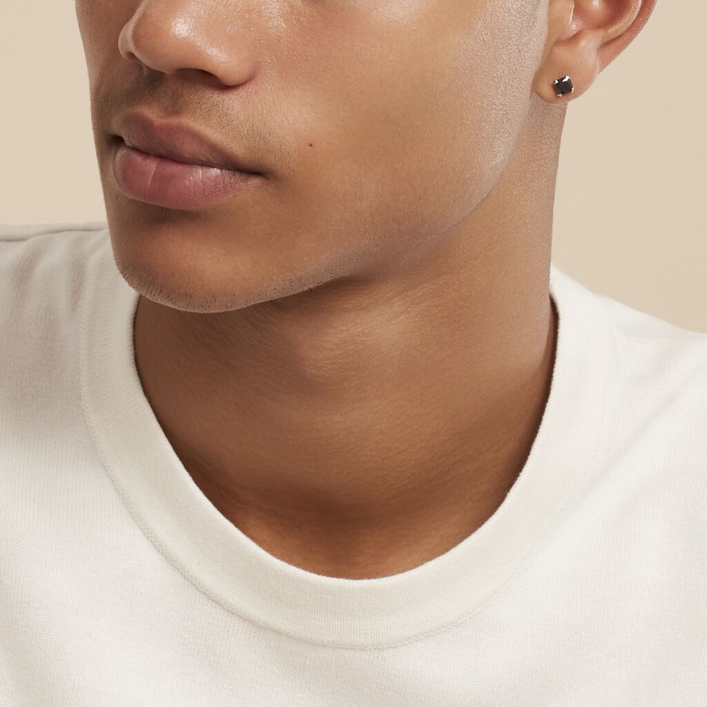 Boucle D'oreille Puce Unitaire Or Blanc 375/1000 Oxyde De Zirconium Noir Carre 5mm