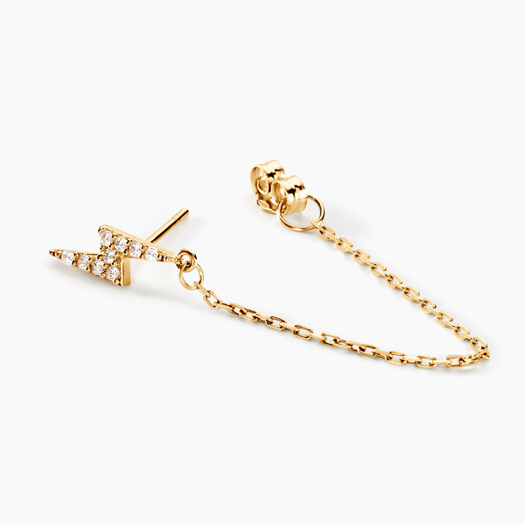 Boucle D'oreille Unitaire Or Jaune 375/1000 Eclair Pavage Oxyde De Zirconium Avec Chaine Forcat