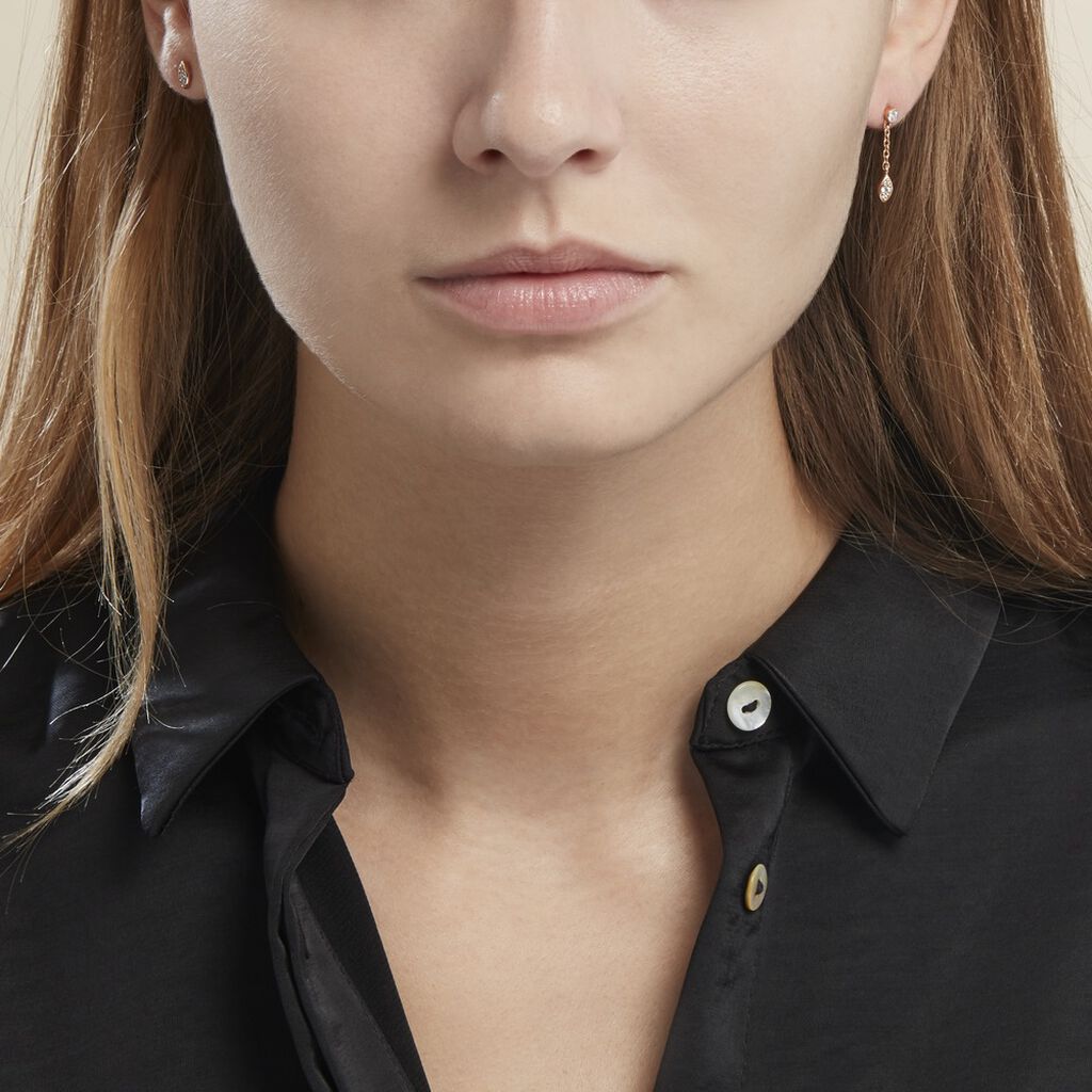 Boucles D'oreilles Dépareillées Argent Rose 925/1000 Amande Et Puce Ronde Oxydes De Zirconium Sertis Clos