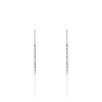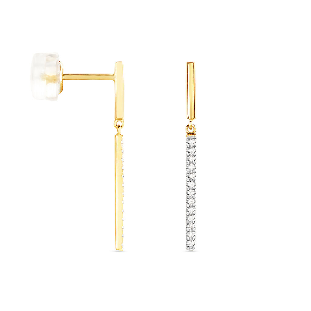 Boucles D'oreilles Pendantes Or Jaune 375/1000 Barrette Pavage Diamants Ronds 0.074cts Longueur 25mm
