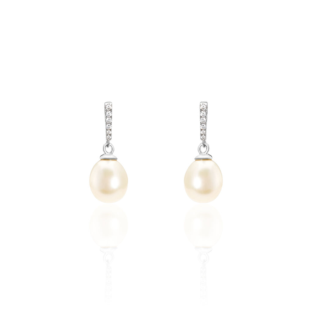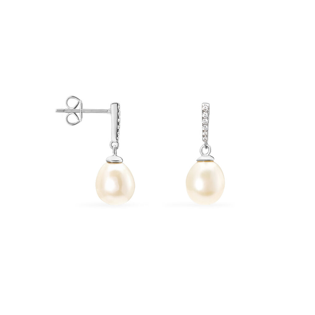 Boucles D'oreilles Pendantes Argent Blanc 925/1000 Perles De Culture Blanches 8/8.5mm Oxydes De Zirconium