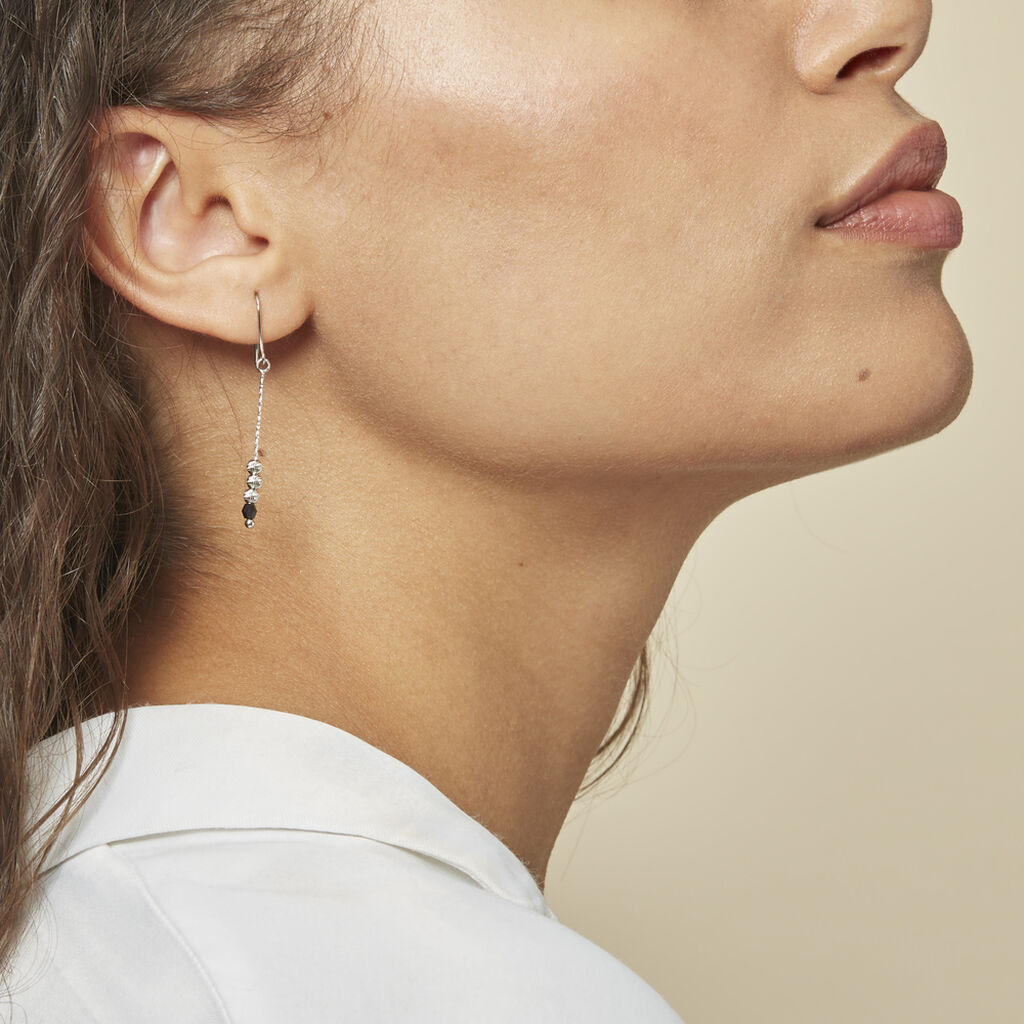 Boucles D'oreilles Pendantes Argent Blanc 925/1000 Boules Effet Diamante Et Pierres Noires