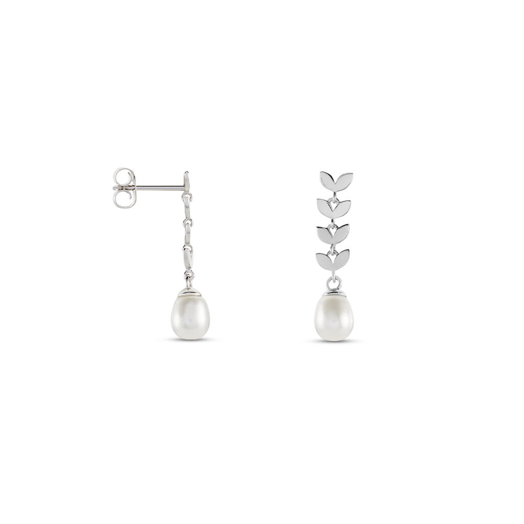 Boucles D'oreilles Pendantes Argent 925/1000 Perle De Culture Et Feuilles Articulées