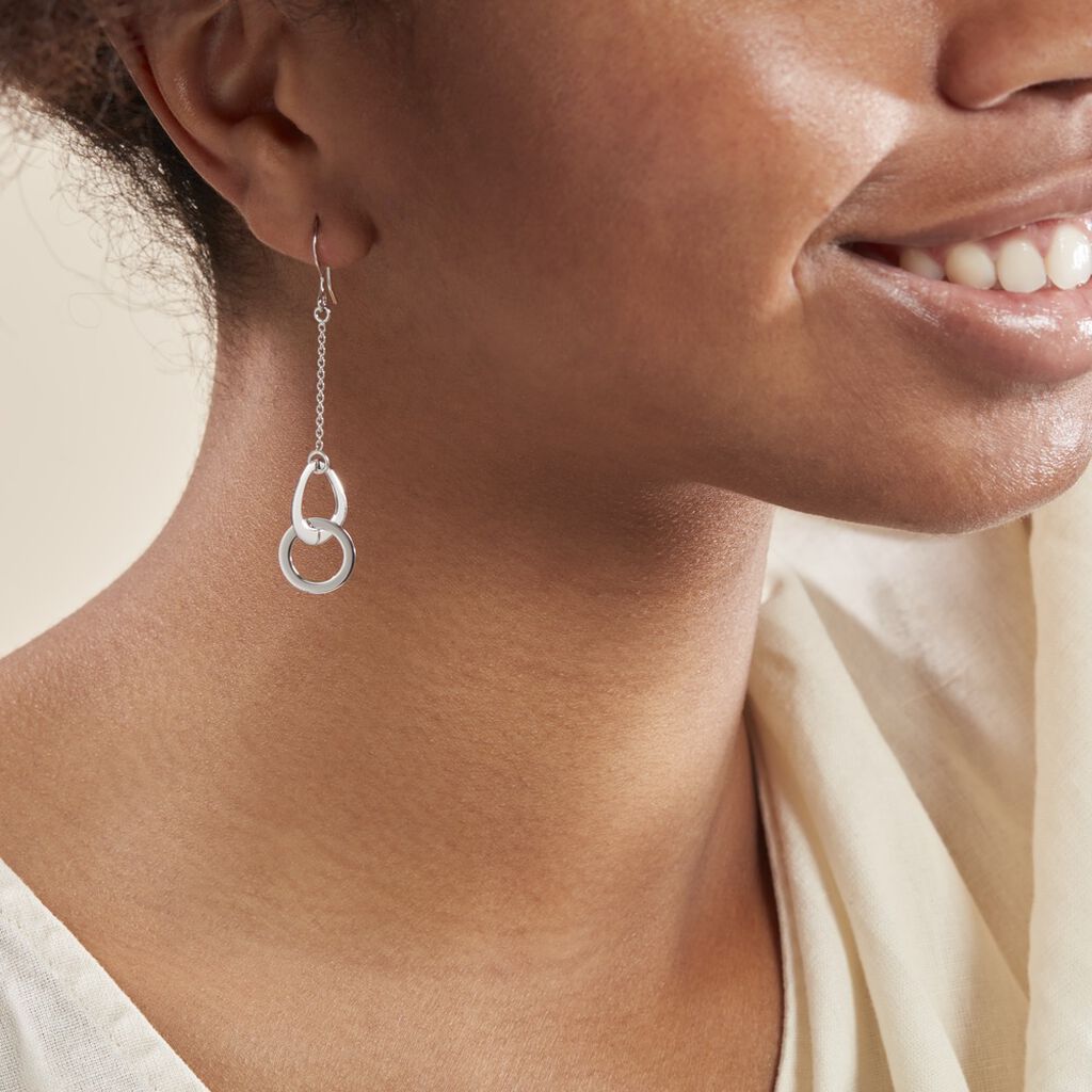 Boucles D'oreilles Pendantes Argent Blanc 925/1000 Anneaux Ovales Entrelaces