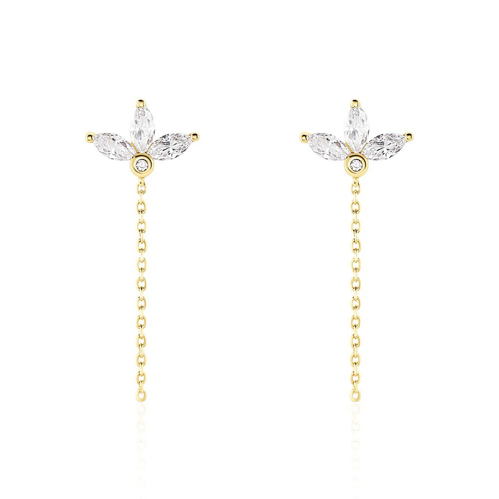 Boucles D'oreilles Pendantes Tiara Or Jaune Oxyde De Zirconium