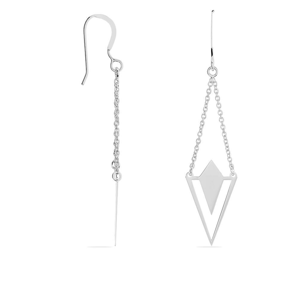 Boucles D'oreilles Pendantes Argent Blanc 925/1000 Triangles Ajoures Et Losanges Double Maille Forcat