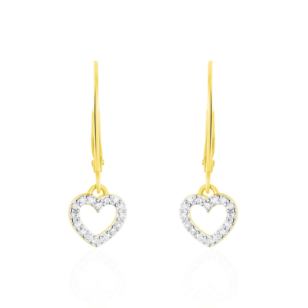 Boucles D'oreilles Or Jaune 375/1000 Dormeuses Forme Cœur Pavage Diamants