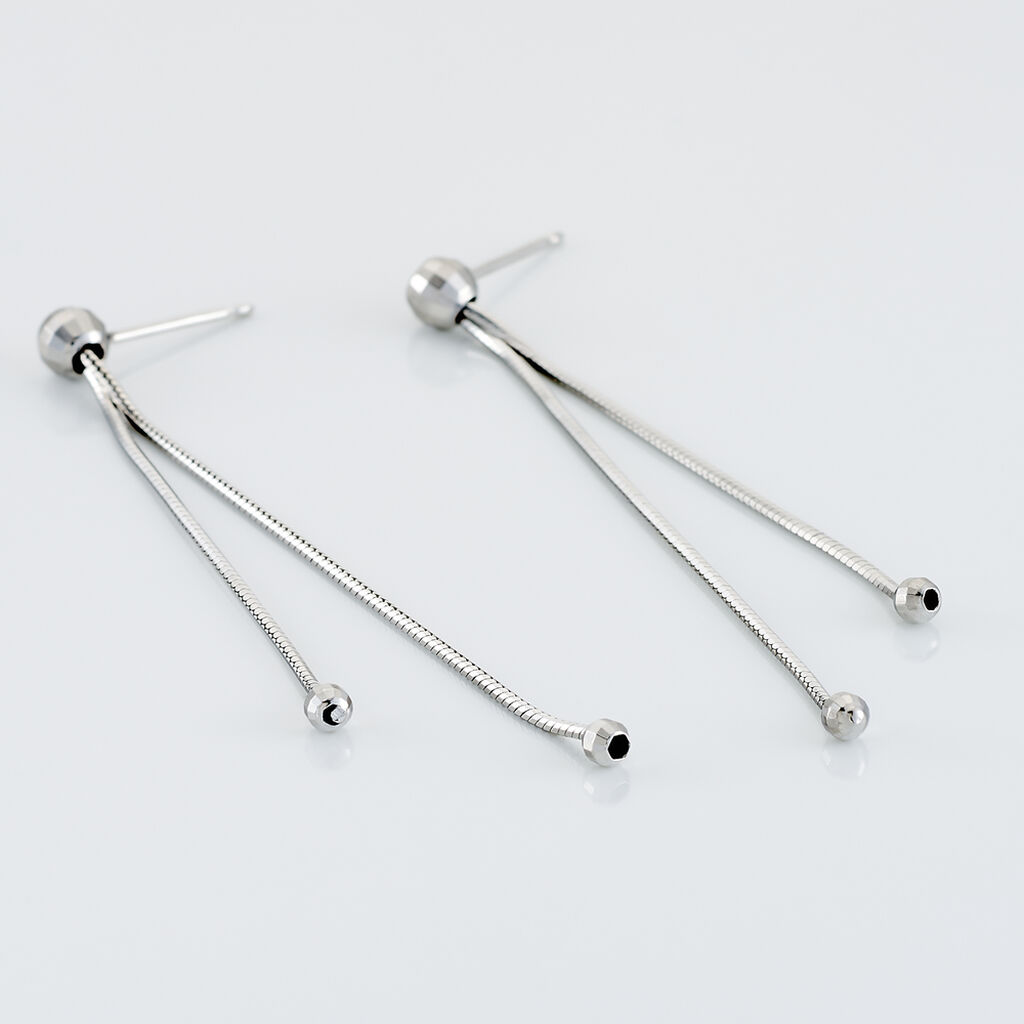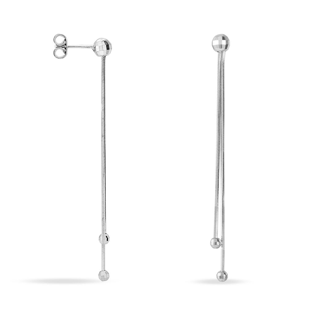 Boucles D'oreilles Pendantes Argent Blanc 925/1000 Boules Double Mailles Serpent