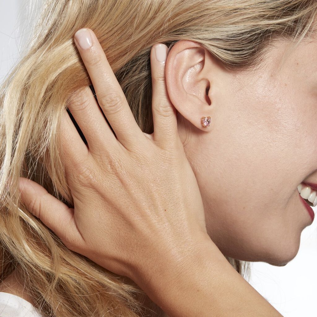 Boucles D'oreilles Puces Plaqué Or Jaune Coeurs Oxydes De Zirconium Rose