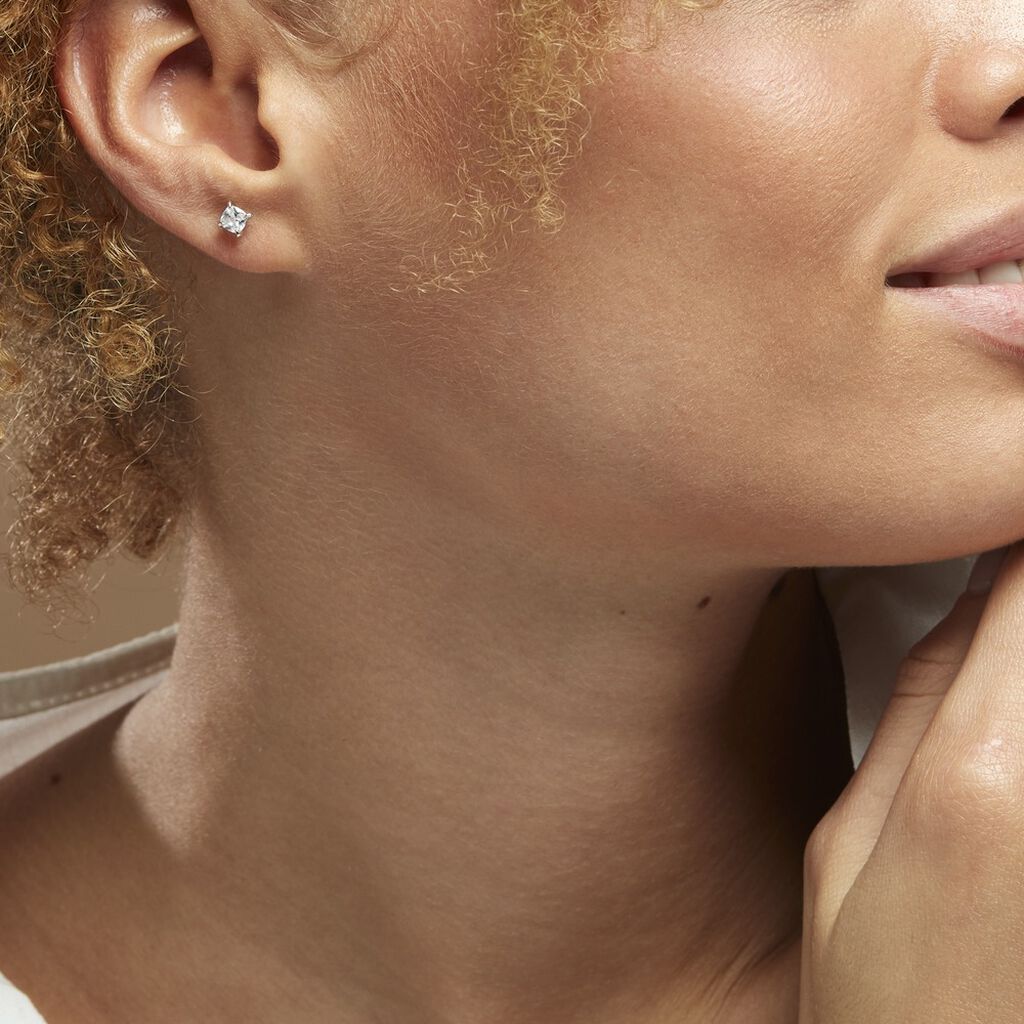 Boucles D'oreilles Puces Argent Blanc 925/1000 Oxyde De Zirconium Carré Serti 4 Griffes 4mm