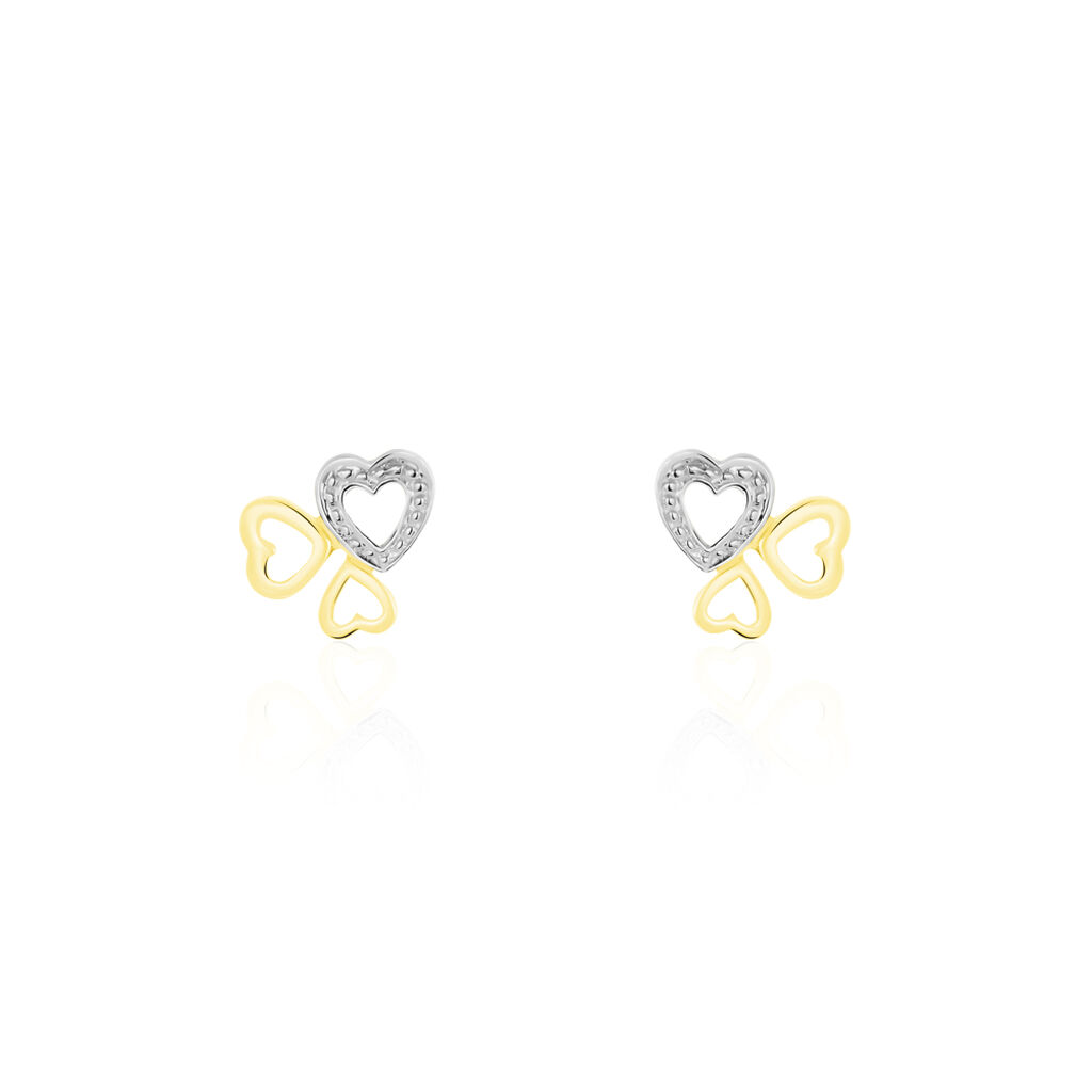 Boucles D'oreilles Puces Anne-maudae Triple Coeurs Or Bicolore