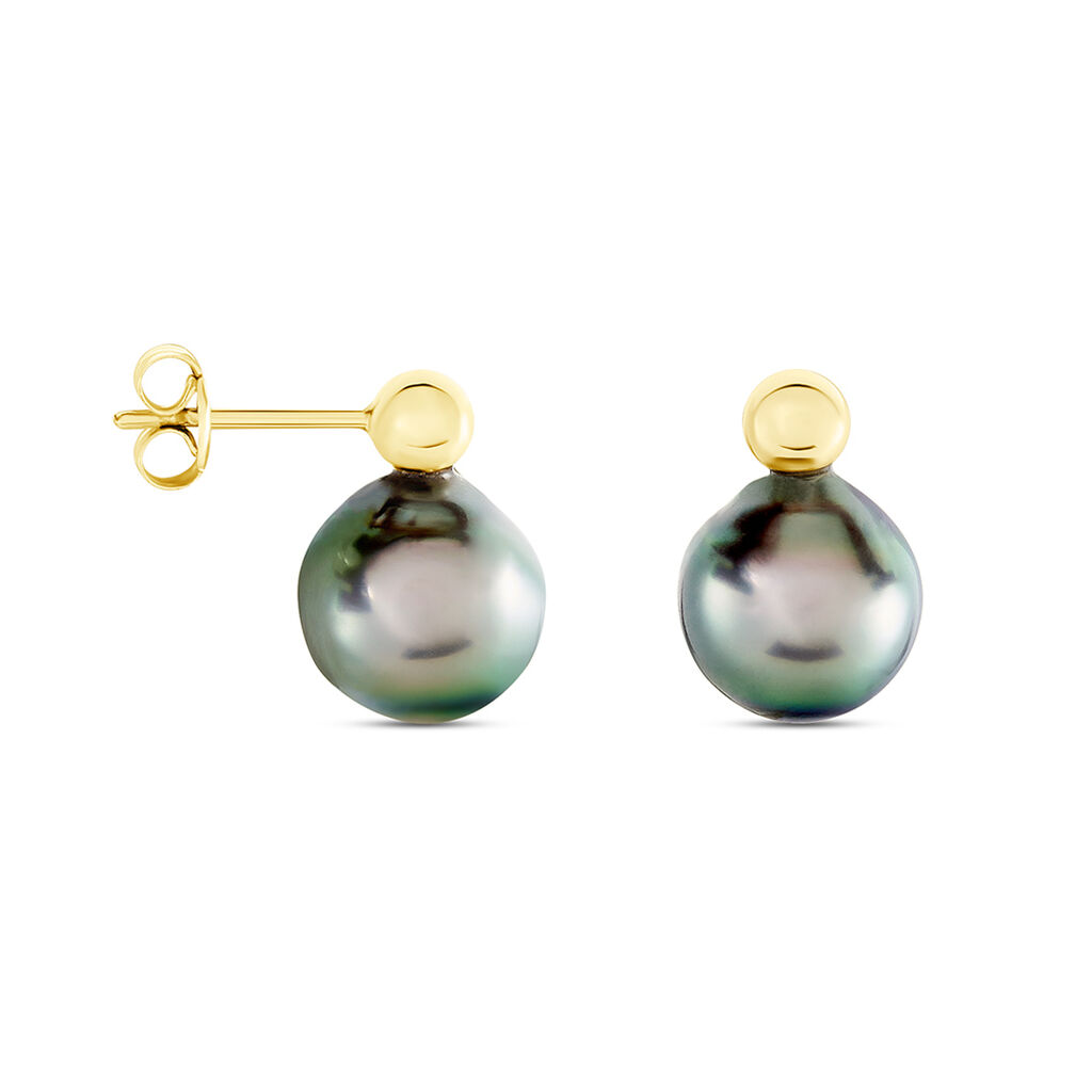 Boucles D'oreilles Or Jaune 375/1000 Perle De Culture Mer Du Sud Tahiti 8/9mm Semi-baroque
