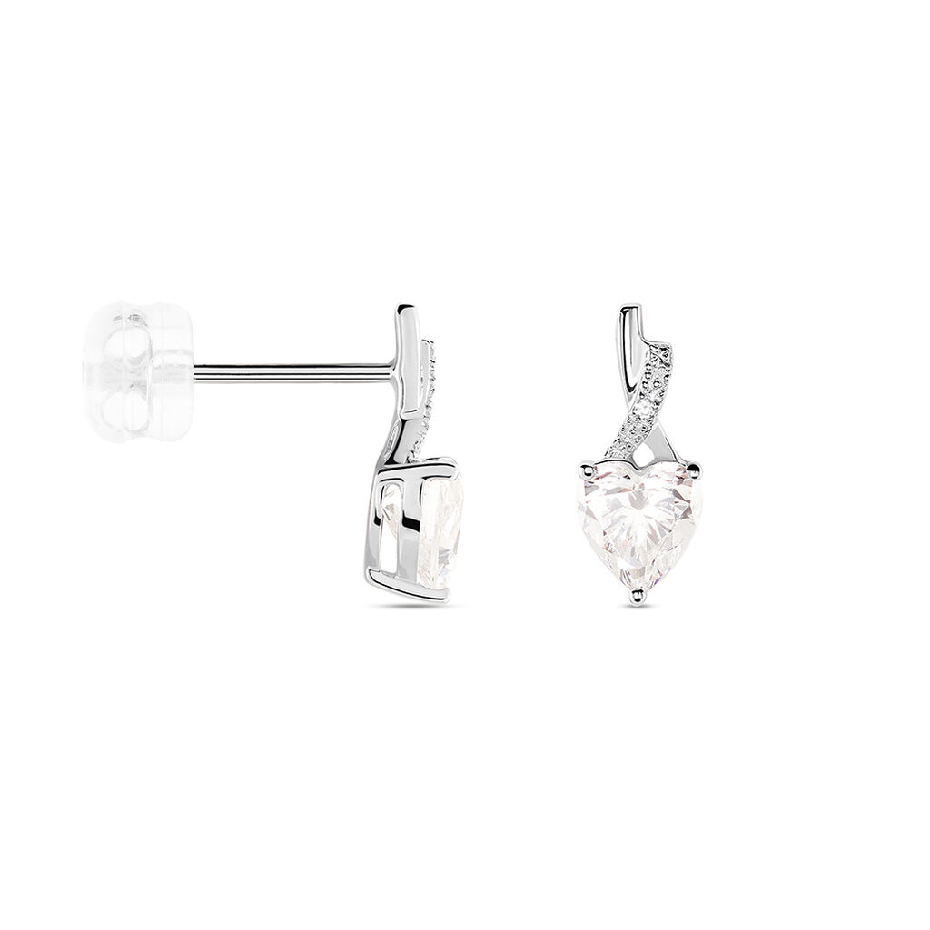 Boucles D'oreilles Pendantes Or Blanc 375/1000 Cœur Oxydes De Zirconium Blanc Serti Griffes