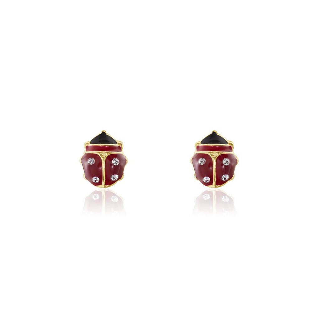 Boucle D'oreilles Puces Or Jaune 375/1000 Coccinelles Email Rouge Et Oxydes De Zirconium