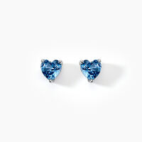 Boucles D'oreilles Puces Argent Rose 925/1000 Cœurs Serti Griffes Oxydes De Zirconium Rouges