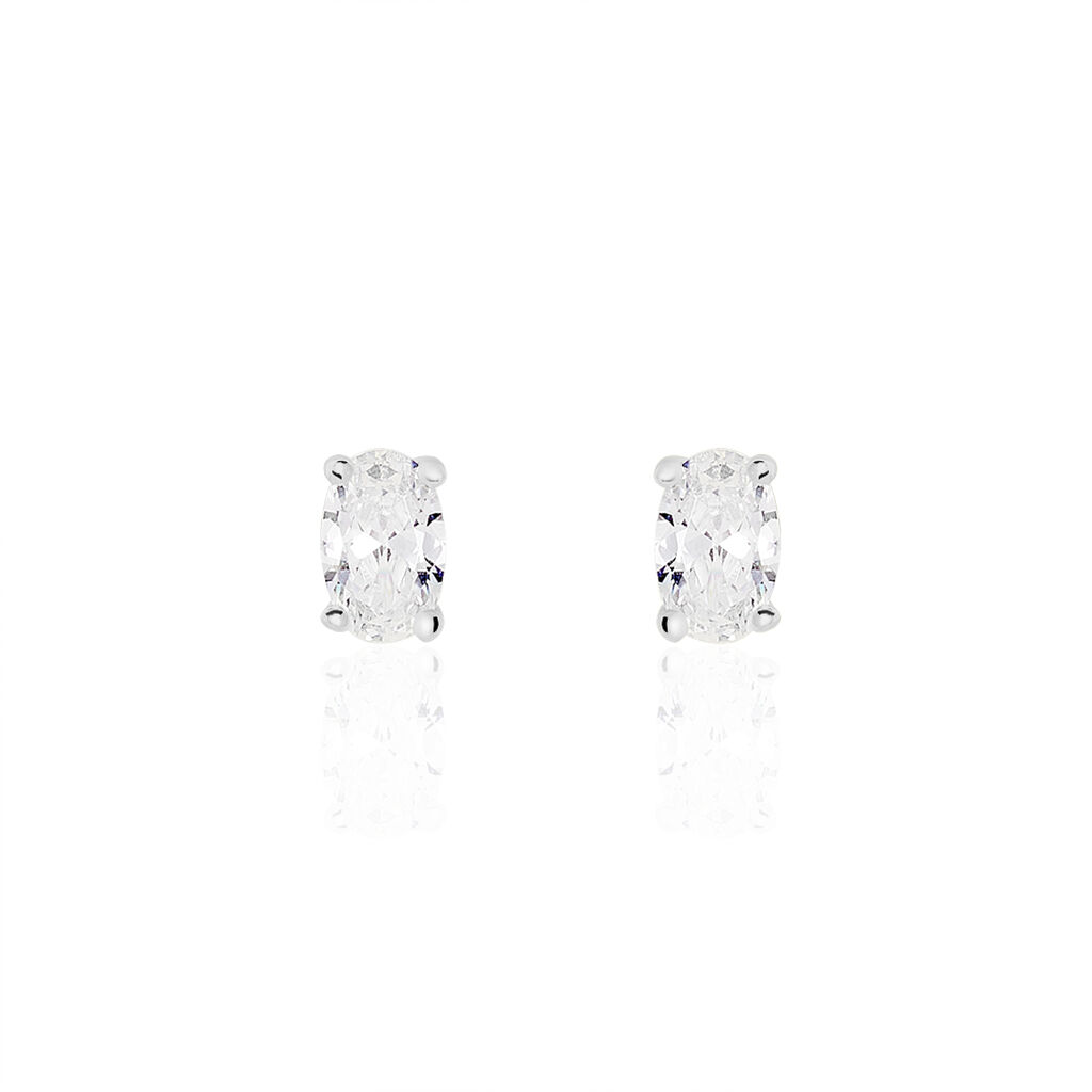 Boucles D'oreilles Puces Argent Blanc 925/1000 Puces Oxydes De Zirconium Formes Ovales 4x6mm