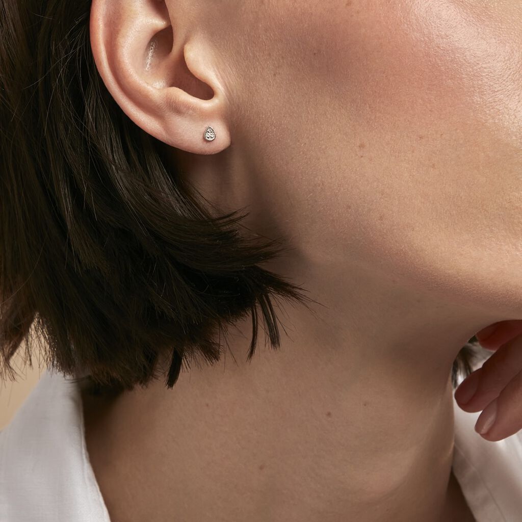 Boucles D'oreilles Puces Or Blanc 375/1000 Gouttes Effet Perlé Et Diamants