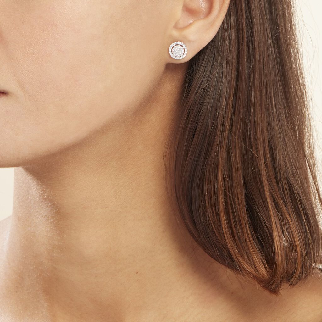 Boucles D'oreilles Puces Or Blanc 750/1000 Entourages Diamants Synthétiques