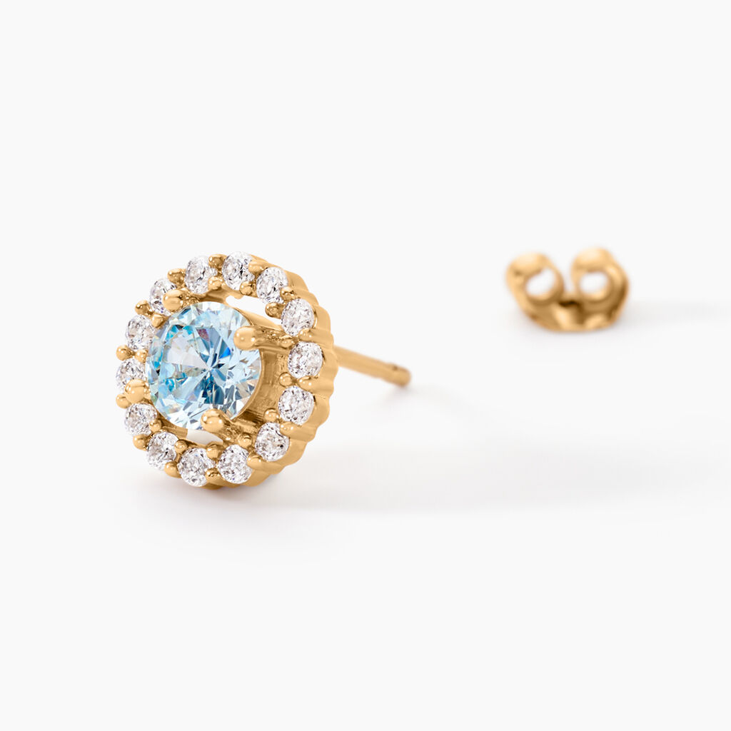 Boucles D'oreilles Puces Plaqué Or Jaune Entourages Pierres Artificielles Bleues Pavage Oxydes De Zirconium Blancs