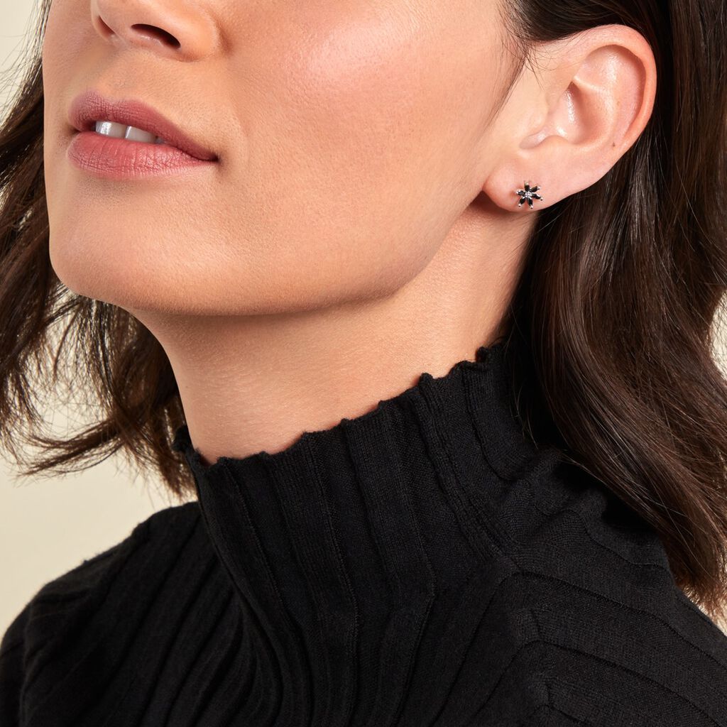 Boucles D'oreilles Puces Argent Blanc 925/1000 Fleurs Oxydes De Zirconium Noirs