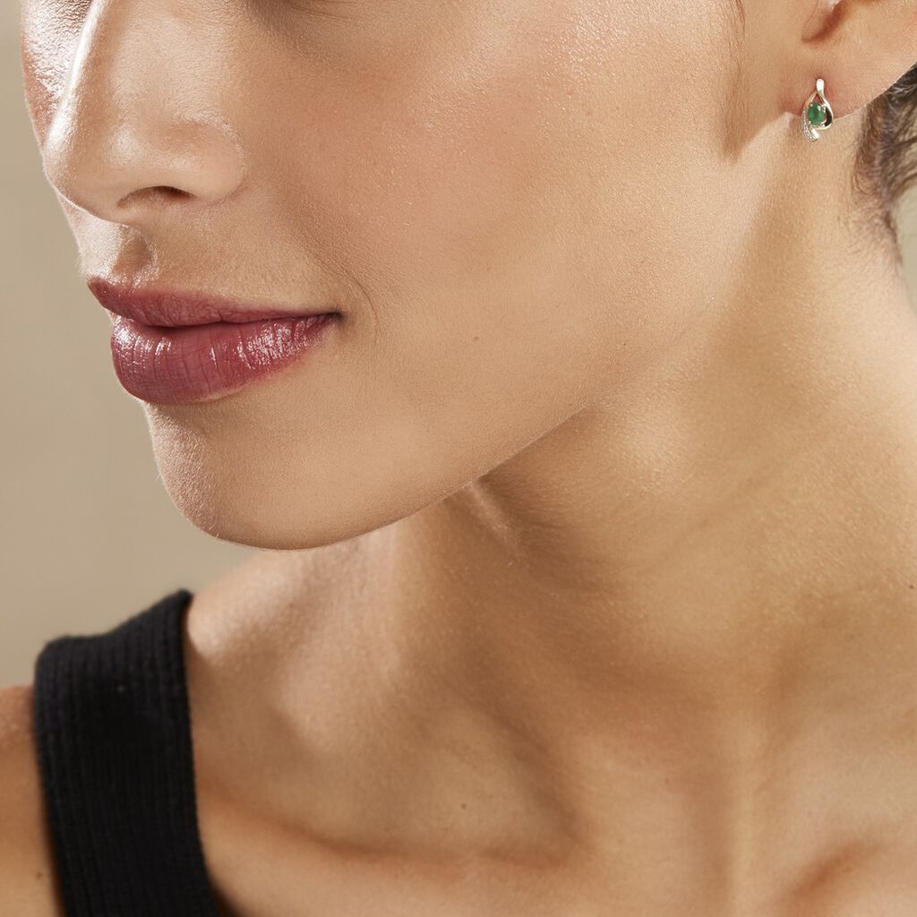 Boucles D'oreilles Puces Sagesse Or Jaune Emeraude Et Diamant
