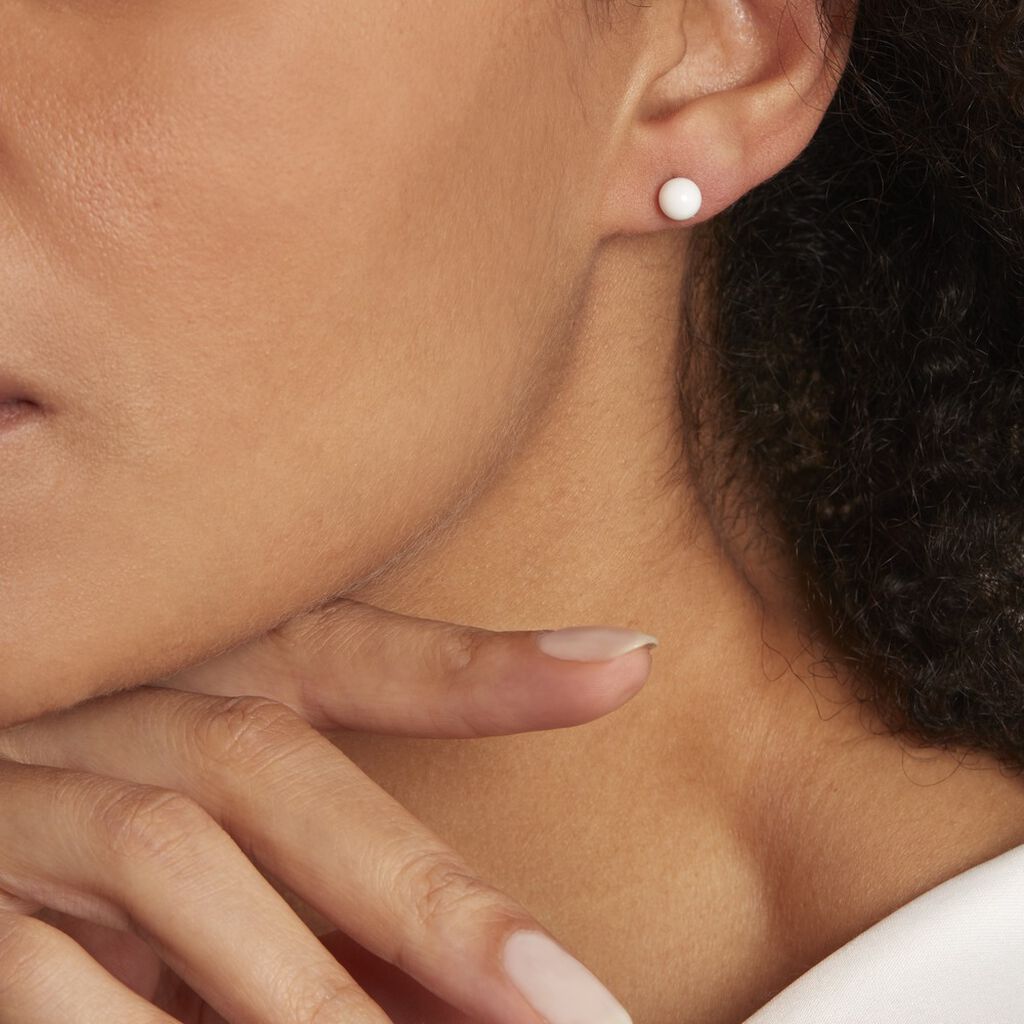 Boucles D'oreilles Puces Argent 925/1000 Boules Ceramiques Blanches Diametre 6mm