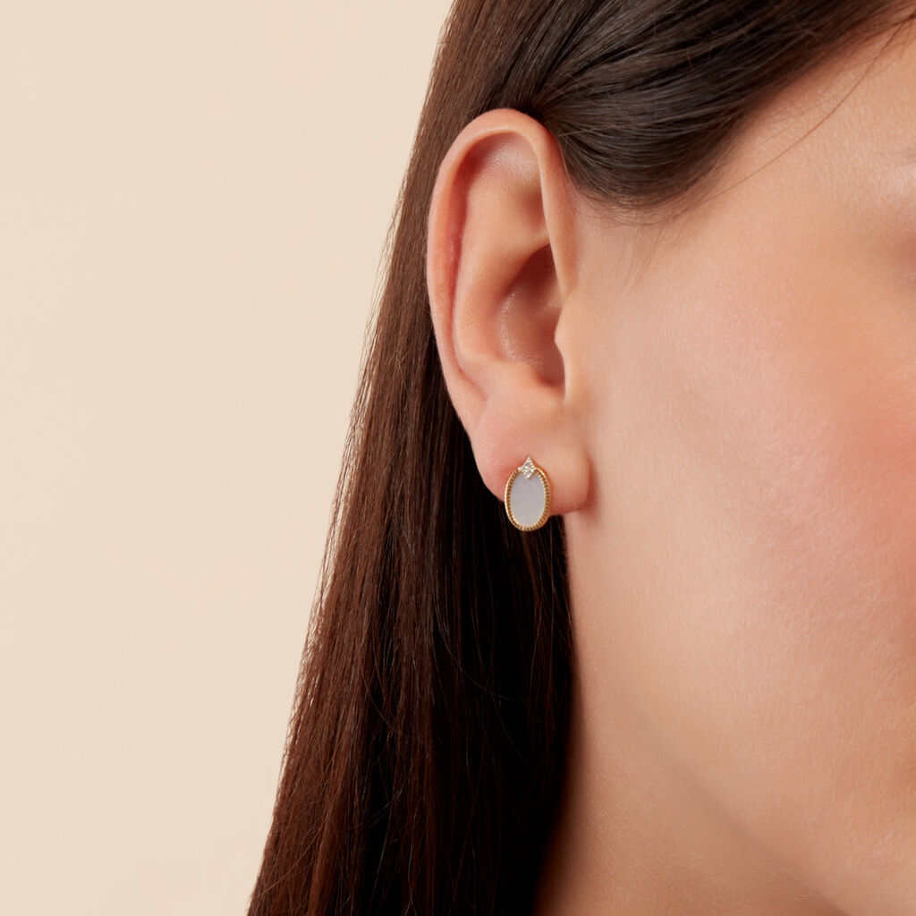 Boucles D'oreilles Puces Tahina Or Jaune Nacre Diamant