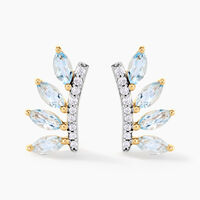 Boucles D'oreilles Puces Or Jaune 375/1000 Petales Amethyste Navette 0.6cts Serti Griffes Et Pavage Oxyde De Zirconium