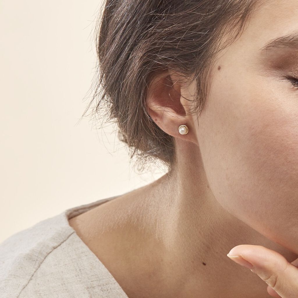 Boucles D'oreilles Puces Valliamee Diamante Or Jaune Perle De Culture