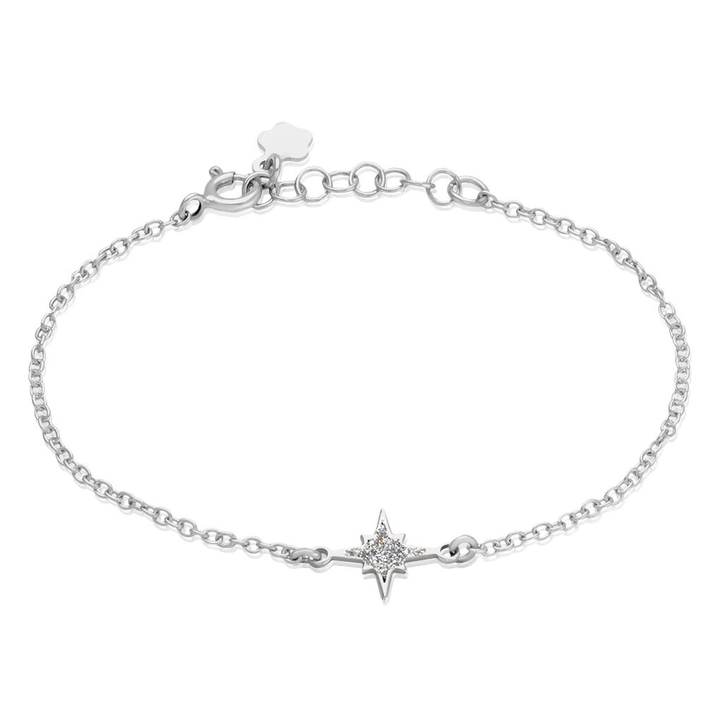 Bracelet Argent Blanc 925/1000 Etoile Glitter Argenté Maille Forçat 16cm