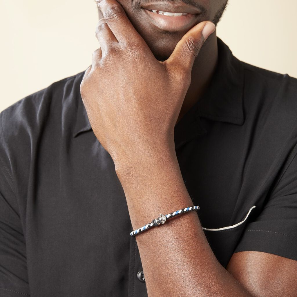 Bracelet Acier Inoxydable Blanc Tresse Synthetique Blanc Noire Et Bleue 21cm