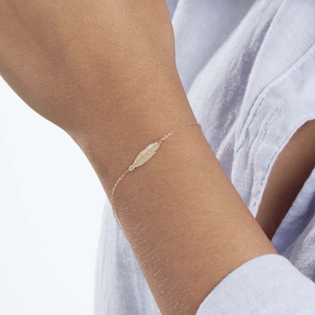 Bracelet Or Jaune 375/1000 Plume Maille Forcat 16+2cm