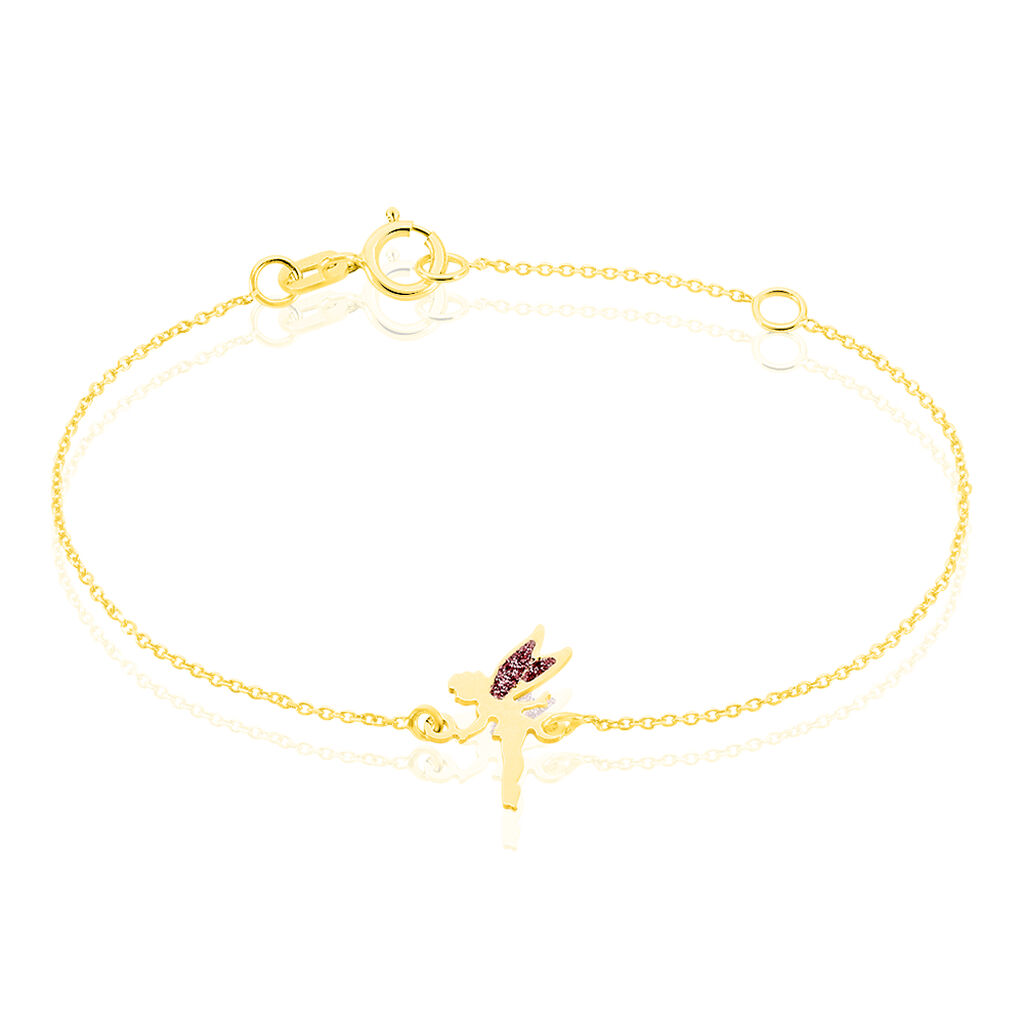 Bracelet Or Jaune 375/1000 Motif Fee Glitter Rose Maille Jaseron 14cm