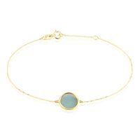 Bracelet Or Jaune 375/1000 Cercle Calcedoine Abricot Maille Jaseron 16+2cm