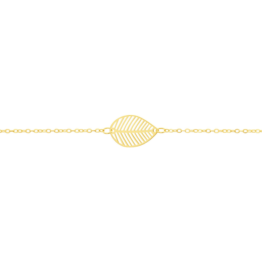 Bracelet Or Jaune 375/1000 Feuille Ajouree Maille Forcat 18cm