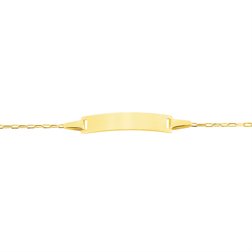 Bracelet Identite Bebe Or Jaune 375/1000 Plaque Rectangle Maille Forcat 12/14cm