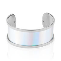 Jonc Acier Dore Motifs Deux Rangs Ajoures + Plaque Iridescente Bleue