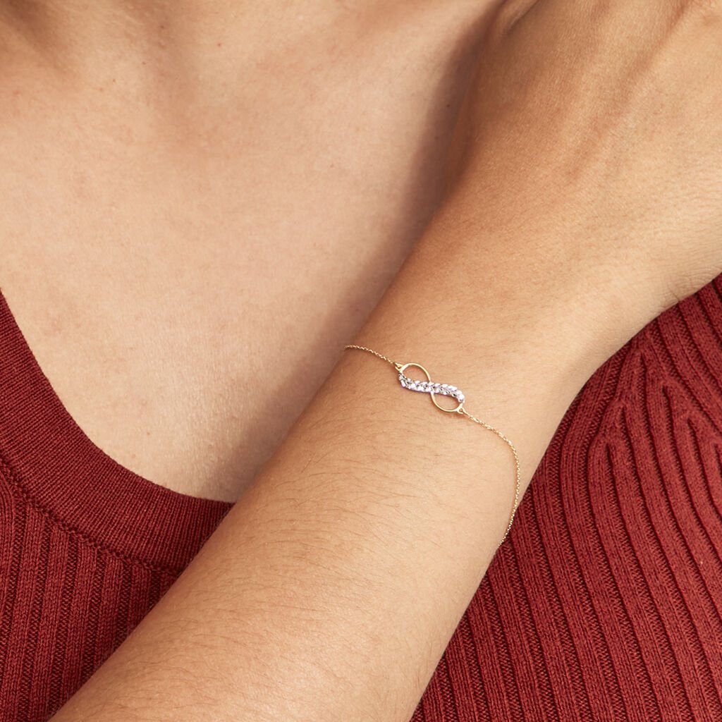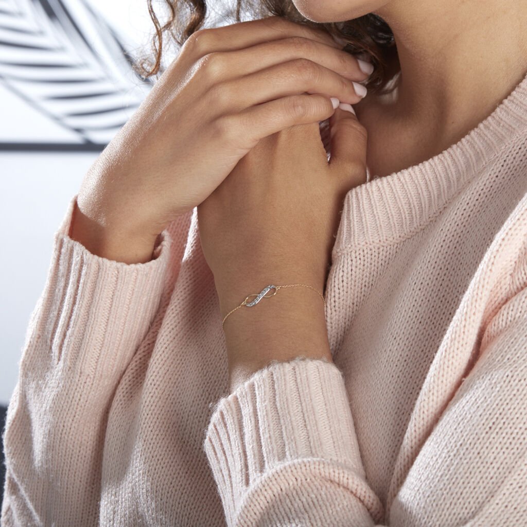 Bracelet Or Jaune 375/1000 Infini Effet Diamante Maille Jaseron 16+2cm