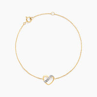 Bracelet Or Jaune 375/1000 Forme Cœur Ruban De Diamants Pavage Diamants Maille Forçat 18cm