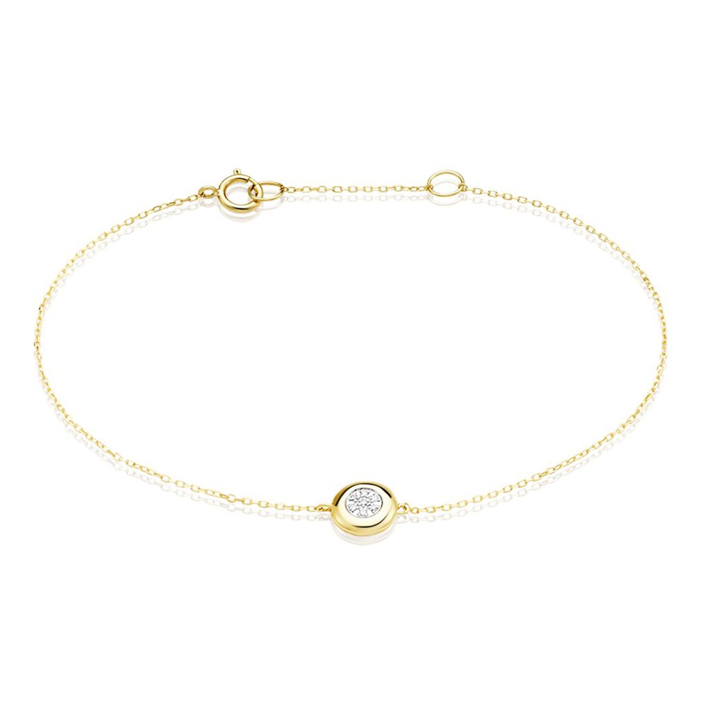 Bracelet Or Jaune 375/1000 Pastille Pavage Diamants Maille Forcat 16+2cm