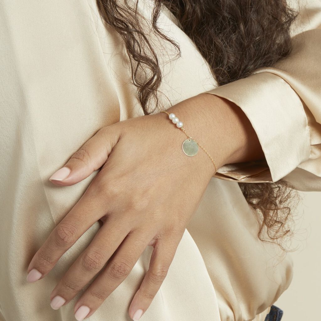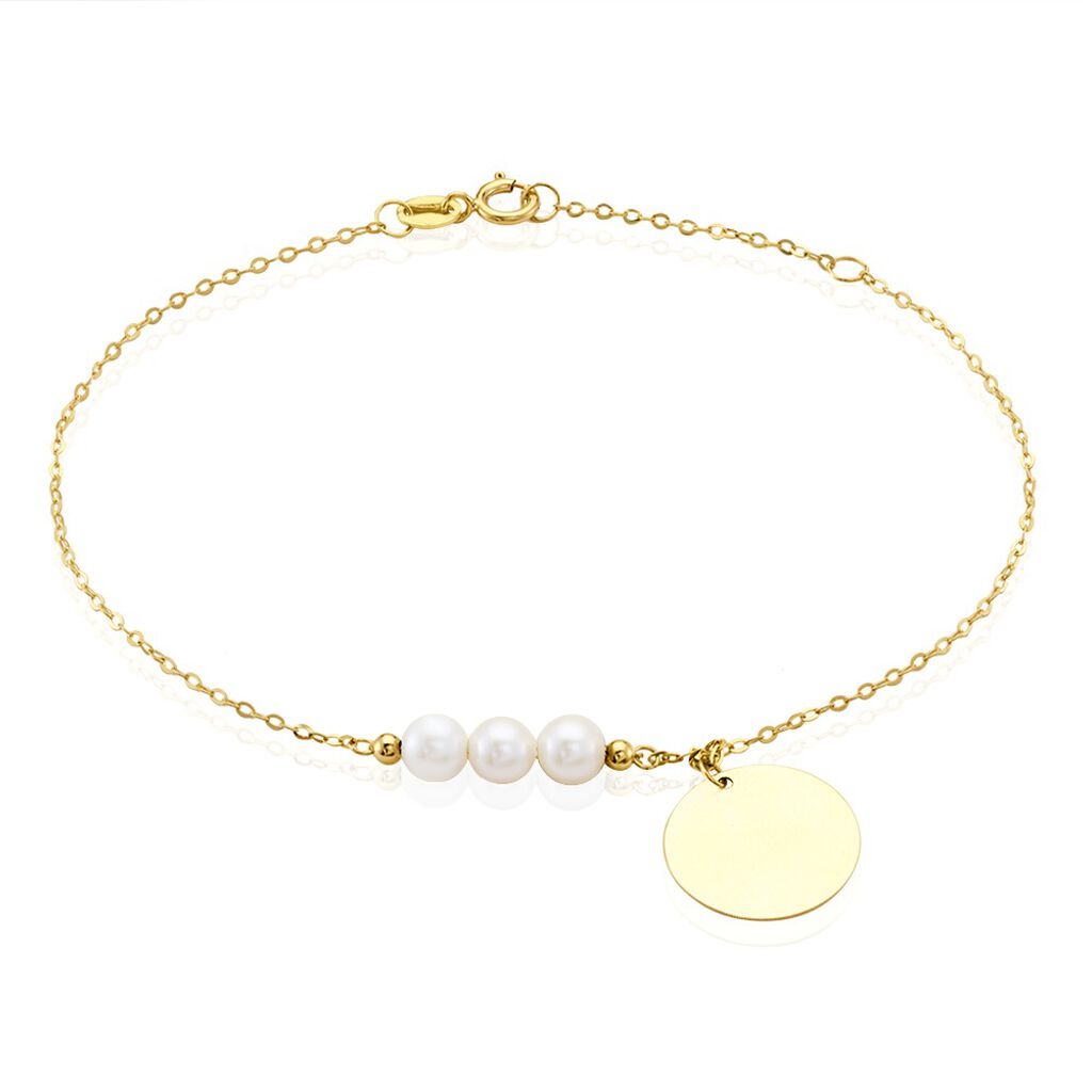 Bracelet Or Jaune 375/1000 3 Perles De Culture Percées 4.5-5mm. Maille Forçat 18cm