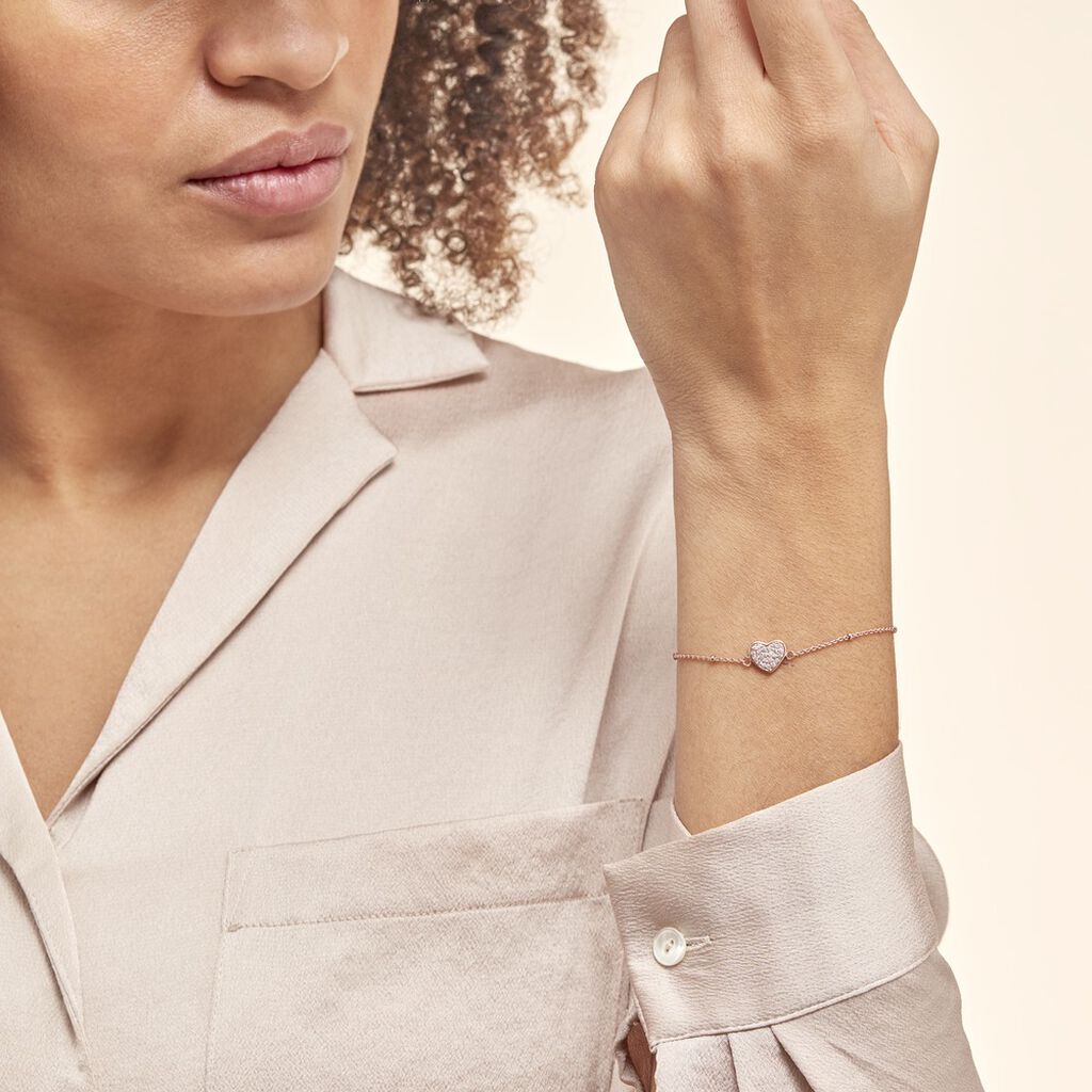 Bracelet Argent Rose 925/1000 Cœur Pave Oxydes De Zriconium Maille Forcat 19cm