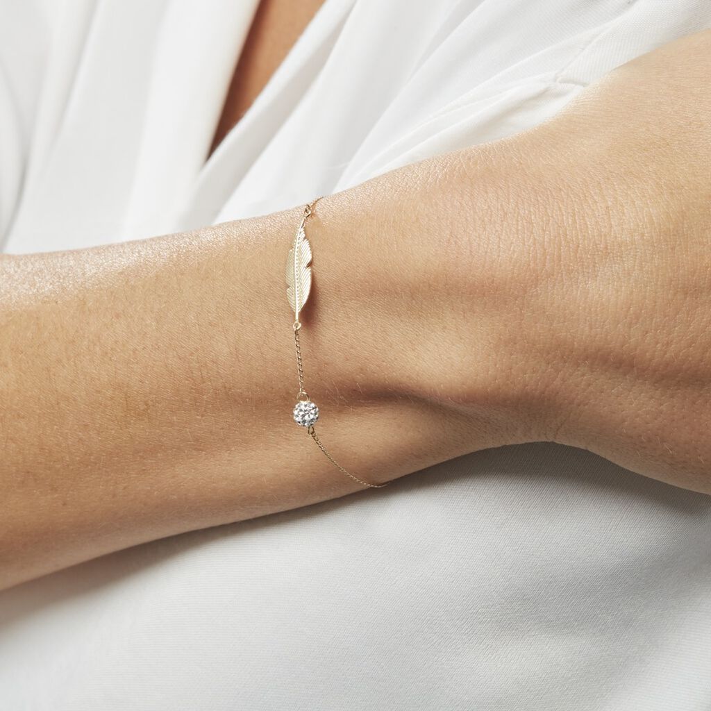 Bracelet Or Jaune 375/1000 ''powoo'' Plume Strass Blanc Maille Cheval 18.5cm