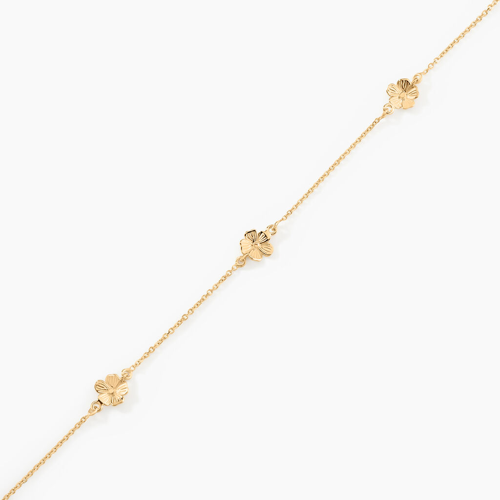 Bracelet Or Jaune 375/1000 3 Fleurs Ciselees Maille Jaseron 16+2cm