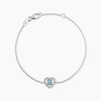 Bracelet Argent Blanc 925/1000 Cœur Oxyde De Zirconium Et Pavage Maille Forçat 16+2cm