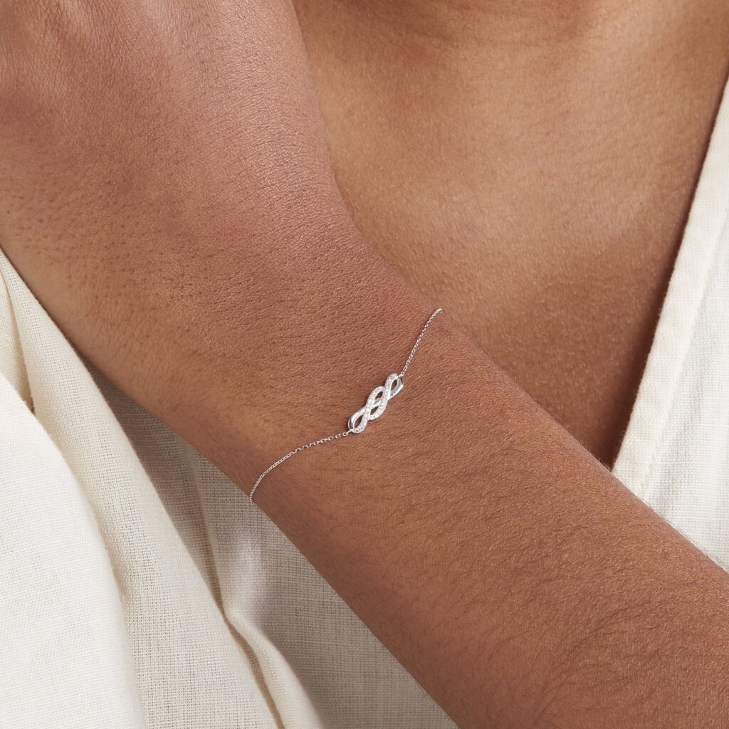 Bracelet Or Blanc 375/1000 Forme Vague Double Diamants 18.5cm