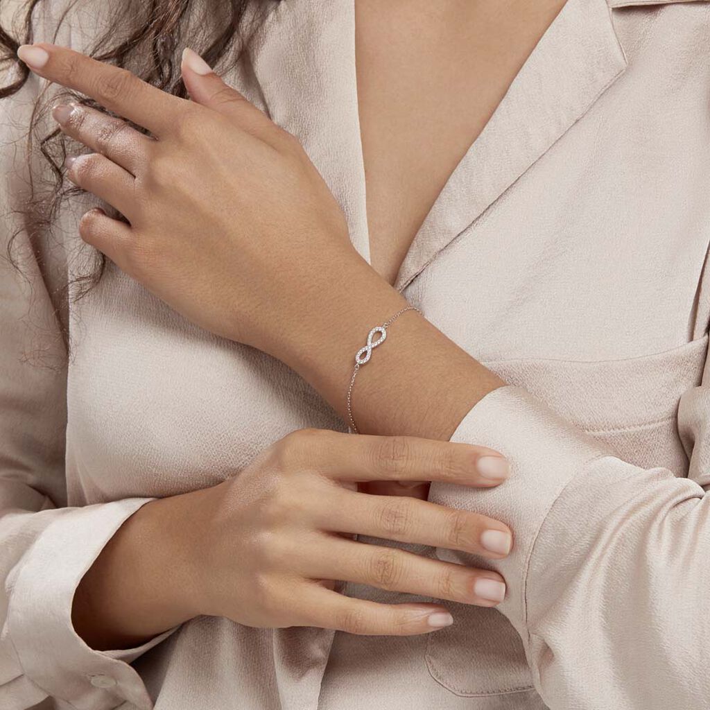 Bracelet Argent 925/1000 veda Signe Infini Pavage Oxydes De Zirconium Chaine Maille Forcat 18cm