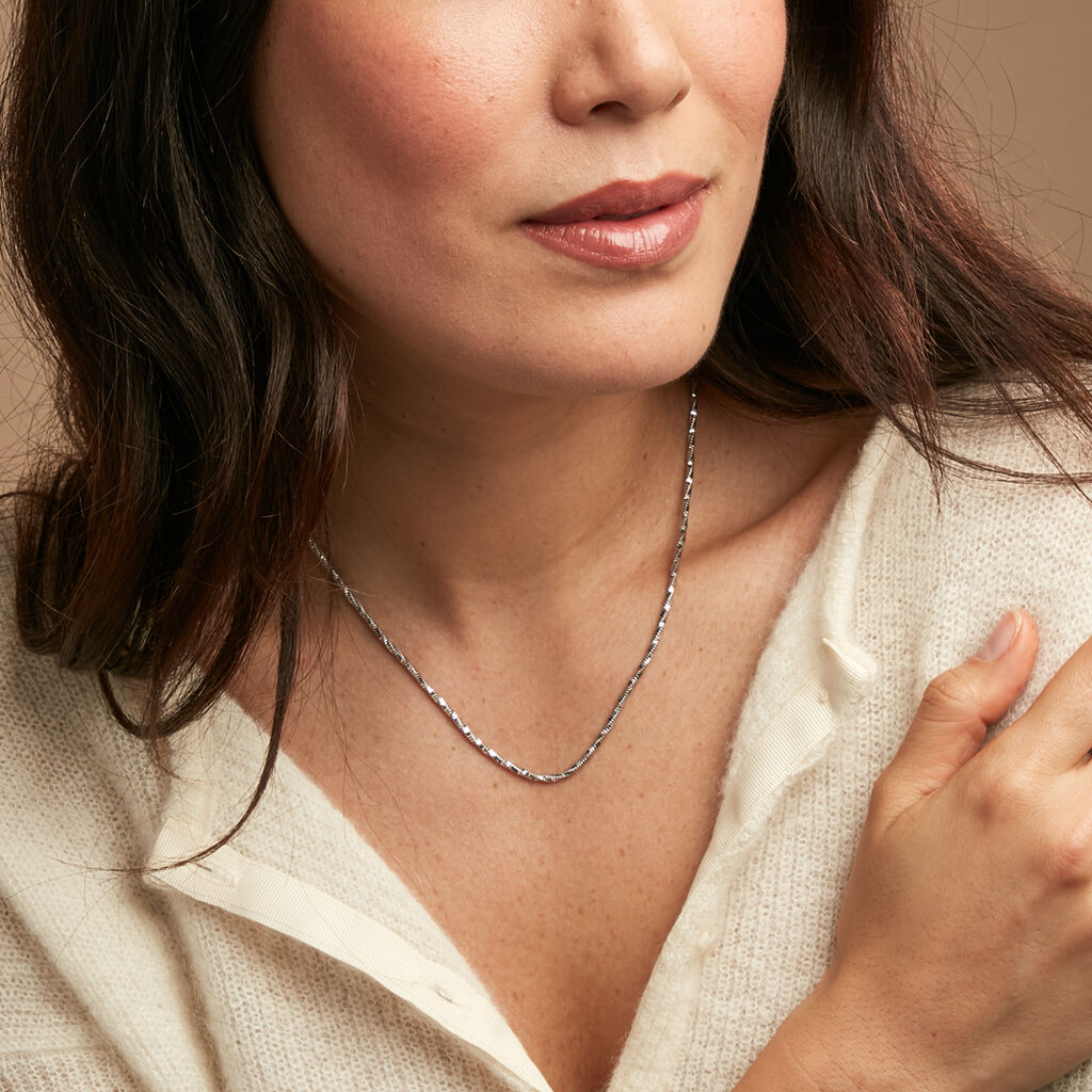 Chaîne Argent Blanc 925/1000 Maille Queue De Souris Torsadée Et Diamantée Largeur 2.15mm 45cm